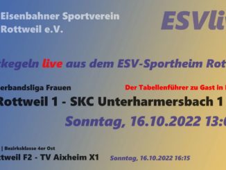 13:00 – 16:15 UhrVerbandsliga – FrauenESV Rottweil I – SKC Unterharmersbach I