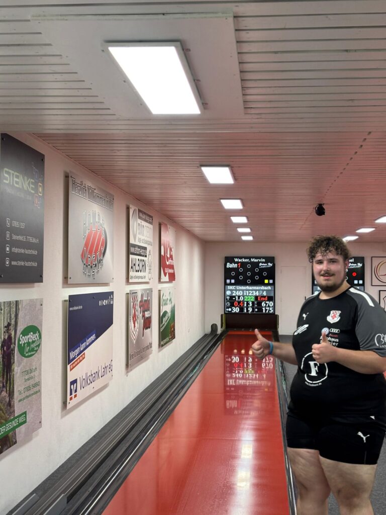 Am Start spielten Marvin Wacker mit einem tollen Ergebnis mit 670 Kegeln. Franz Josef Wacker jr. 564 Kegel und damit einer deutlichen Führung.