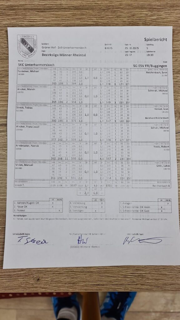 Am Schluss: Patrick Armbruster – Robert Nosic 530:587 Kegel. Manuel Malek – Lukas Uetz 551:554 Kegel.