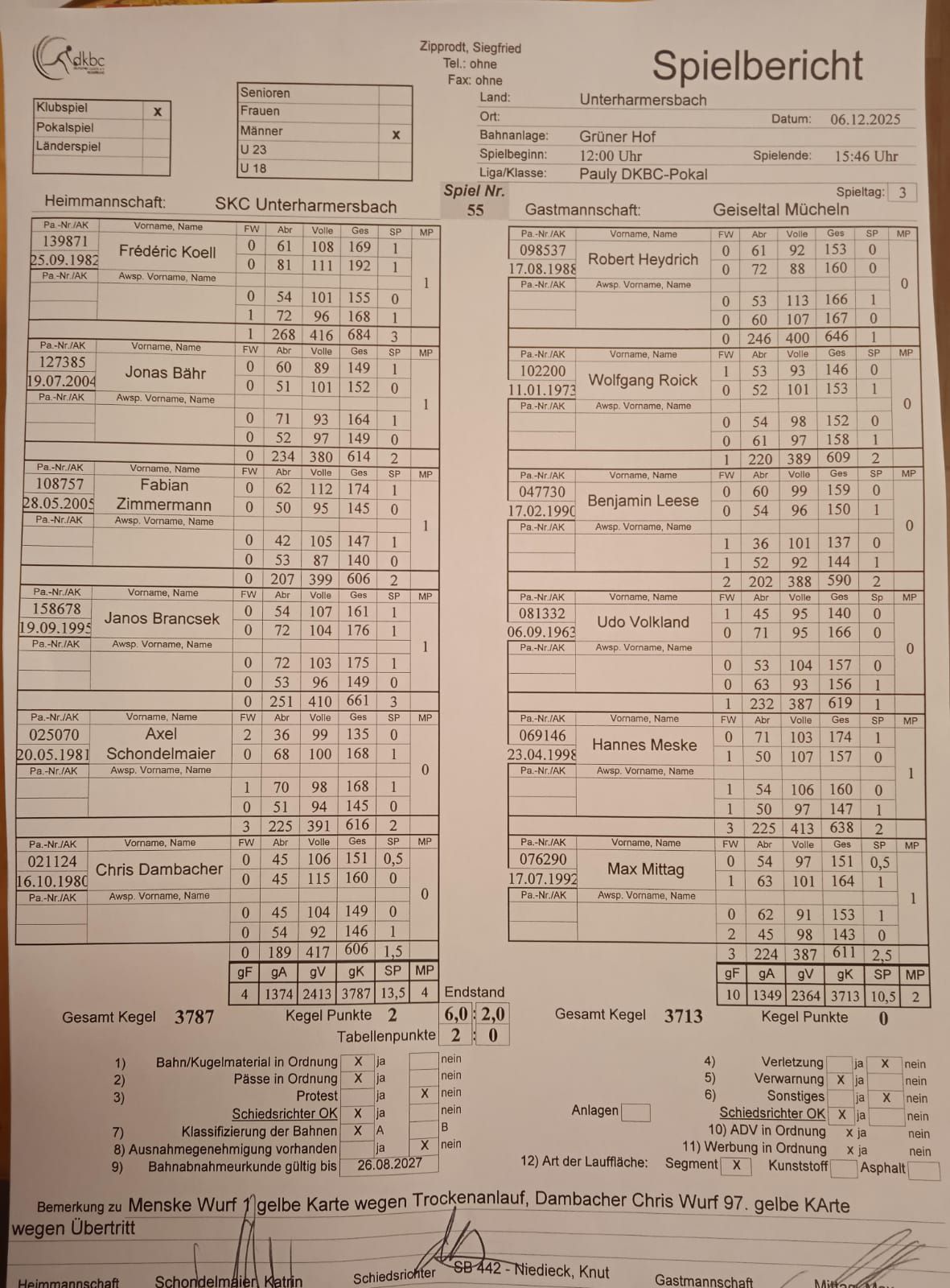 Auch und der Mitte doppelter Punktgewinn für den Hombe. Fabi (606) und Branyo mit starken 661 Kegel sorgten für die noch nötigen zwei Mannschaftspunkte.