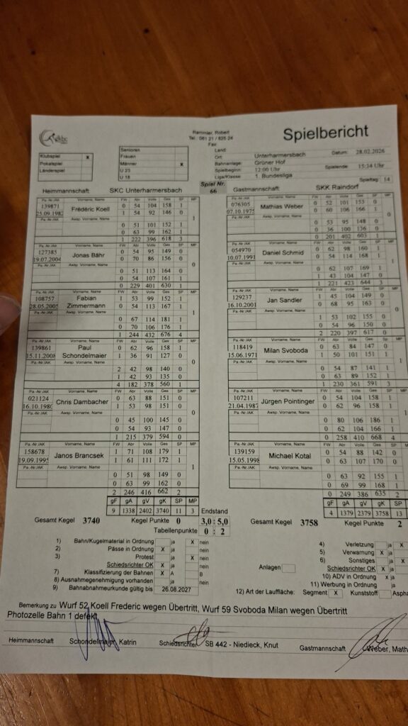 SKC Unterharmersbach 3740-3758 SKK Raindorf 3-5 Punkte