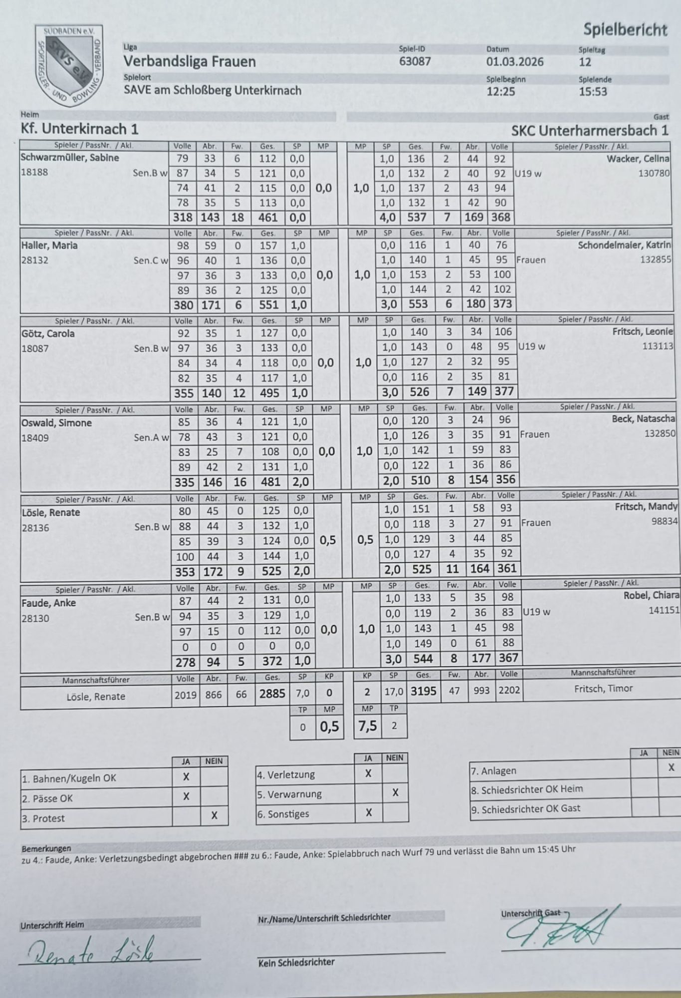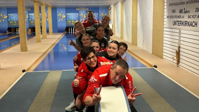 Am Start Celina (537) und Katrin (553) mit Tagesbestwert. In der Mitte Leonie (526) und Taschi (510). Am Schluss Chiara (544), Mandy (525) ließ dabei lediglich einen halben Ehrenpunkt für die gastgebenden Unterkirnacherinnen zu.