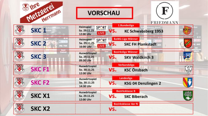 Spannendes SKC-Programm am Wochenende: Von der möglichen Herbstmeisterschaft der Ersten über wichtige Punktekämpfe in BaWü-Liga, Verbands- und Landesliga bis hin zu spannenden Verfolgerduellen und einem Derby unter Druck – alle Teams des SKC Unterharmersbach stehen vor richtungsweisenden Partien.